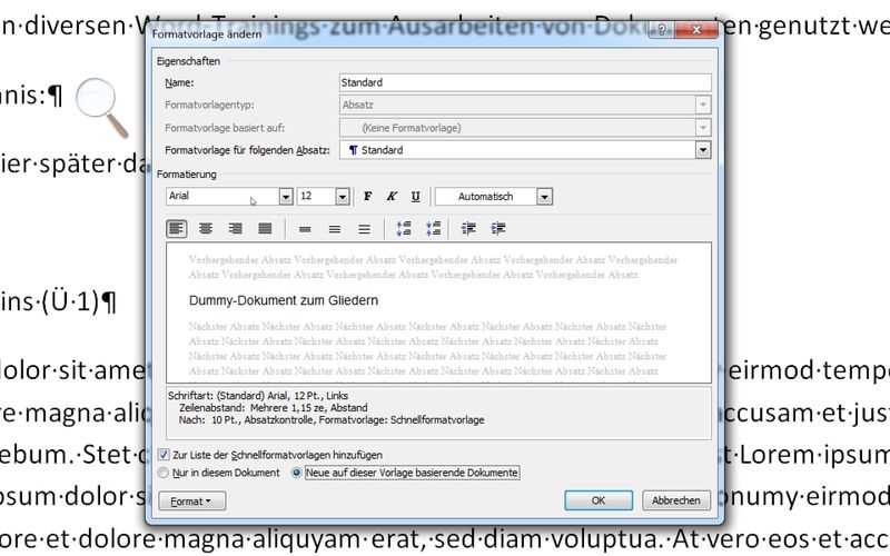 Übung zu den Formatvorlagen: Bereitstellung eines "Dummy"-Dokuments für die Übungen