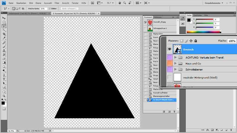 Tipp 2: Strg und Klick in Ebenenminiaturbild maskiert Pixel der Ebene - Maskierungspraxis mit Zauberstab (W) und Lasso (L)