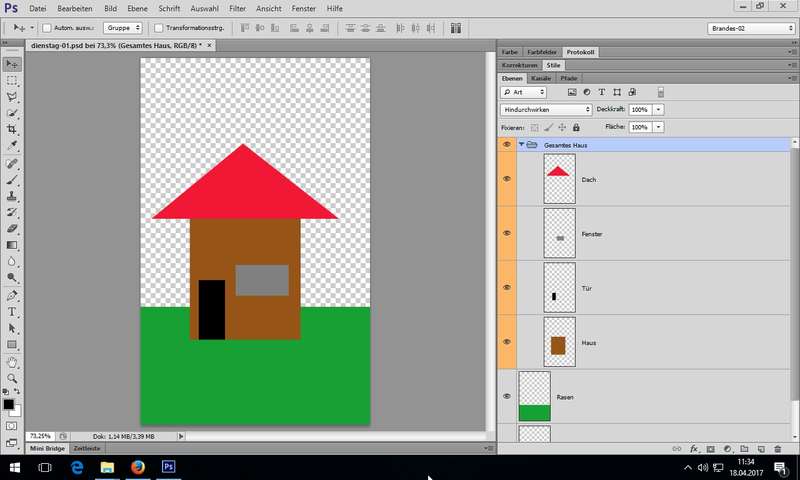 Anm.: Pinsel arbeitet standardmäßig mit Vordergrundfarbe - Pinsel (Brush - B)