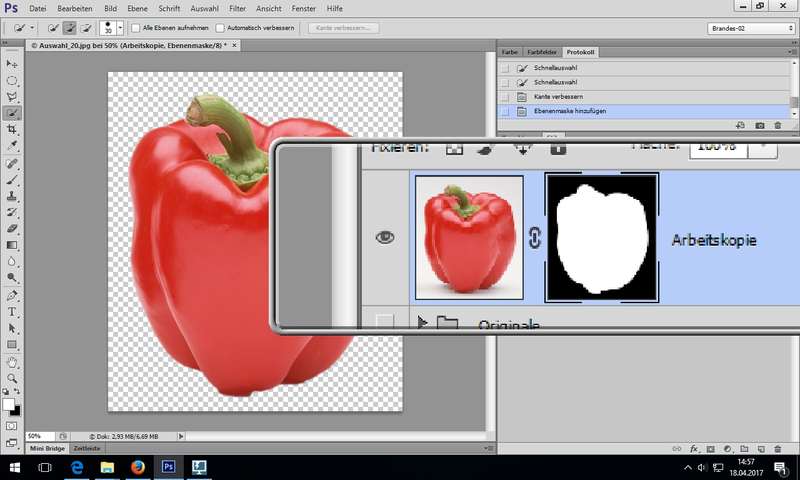 mit dem Schnellauswahlwerkzeug, Kurzerläuterung Zauberstab (klass. Werkzeug der Bildbearbeitung) - Kante verbessern (bitte immer nutzen)