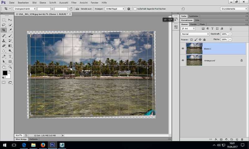 Anm.: ausnahmsweise benötigen wir hier eine "echte" Hintergrund-"Ebene" (Hintergrund - kursiv) - Bildkorrekturen
