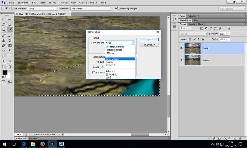 Kopier-Stempel (S) - Grobes Ausbesserungstool für (klassisches Werkzeug) - erst mit Alt + Klick die Vorgabe (Quelle) zum Kopieren bestimmen