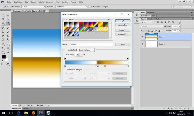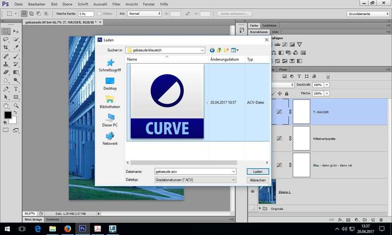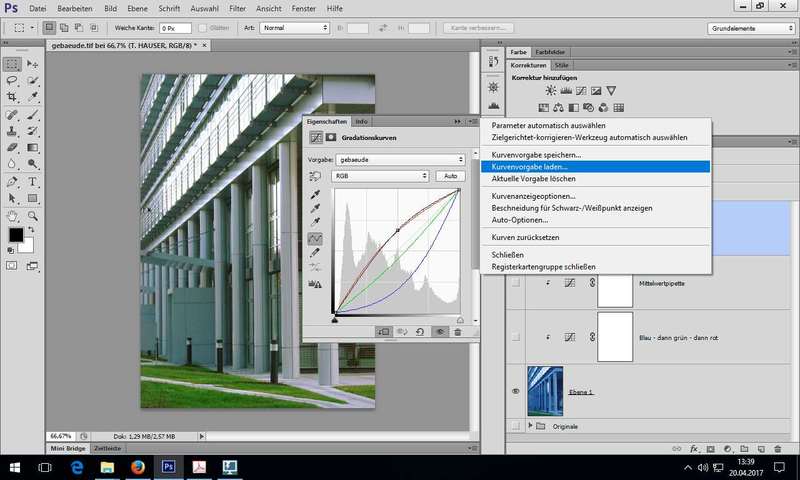Einstellungsebenen: also Einstellungsebene für Gradationskurven und nicht Menü Bild - Korrekturen - Gradationskurven... - Arbeitsbereiche
