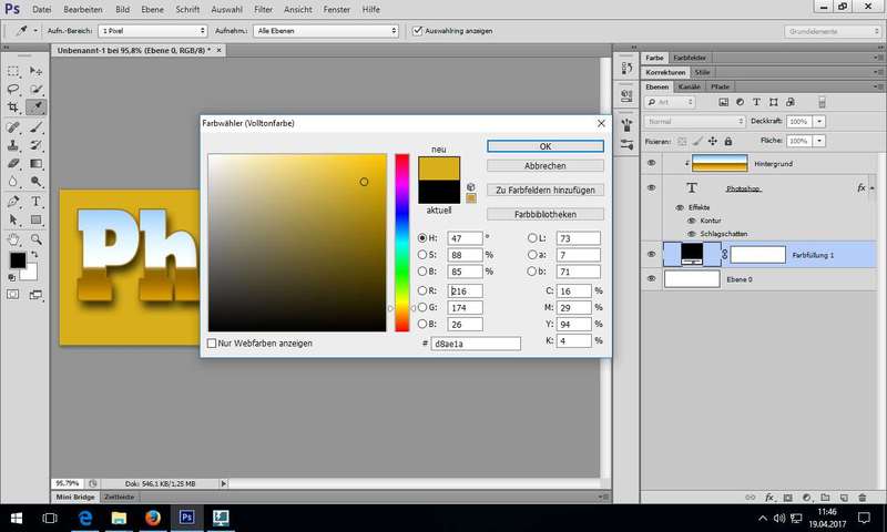 Übung (nach Wargalla): mit Lab-Farbraum Lab "alle" Farben mittels zwei ineinanderkopierter Ebenen erstellt und analysiert