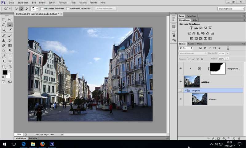 Übung: "flaues" Bild aufwerten, Nutzung über Einstellungsebene (Palette Korrekturen)