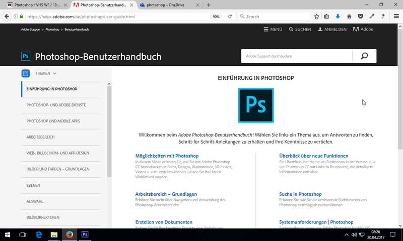 Online-Benutzerhandbuch zu Photoshop: helpx.adobe.com/de/photoshop/user-guide.html