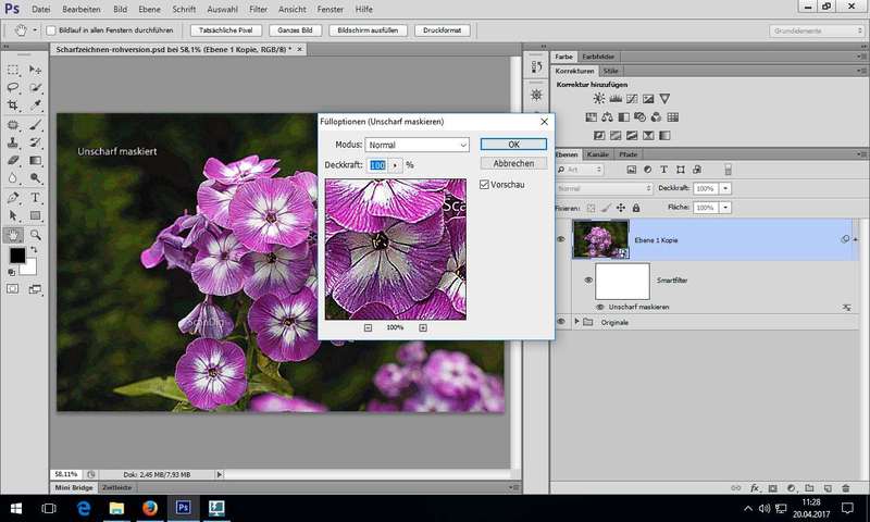 Links: Adobe Hilfe Thema "Schärfen" (Link), Erläuterungen auf Portal webmasterpro (Link)