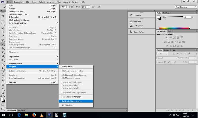 hier: Skripten (Dateien per Stapel laden) : so werden in einem Arbeitsschrit alle Dateien für eine Bildkomposition in ihre eigenen Ebenen geladen - Transformieren: Verzerren, Verformen