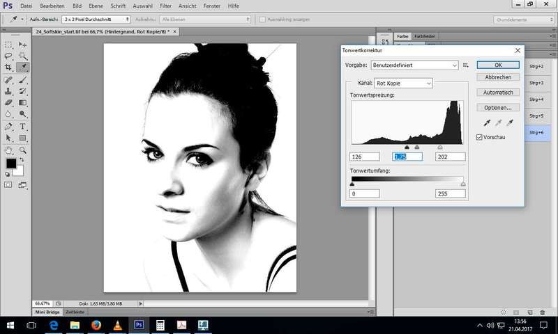 Über Palette Kanäle (hier Rot) eine neue Maske (mit Unterstützung durch Tonwertkorrektur) für das Portrait (Gesicht) erstellt - Abschlussübung: