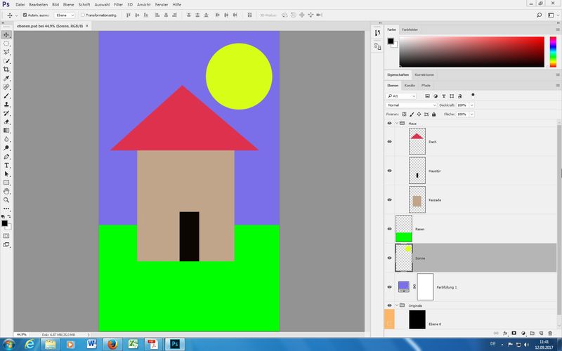 Anm.: Pinsel arbeitet standardmäßig mit Vordergrundfarbe - Pinsel (Brush - B)