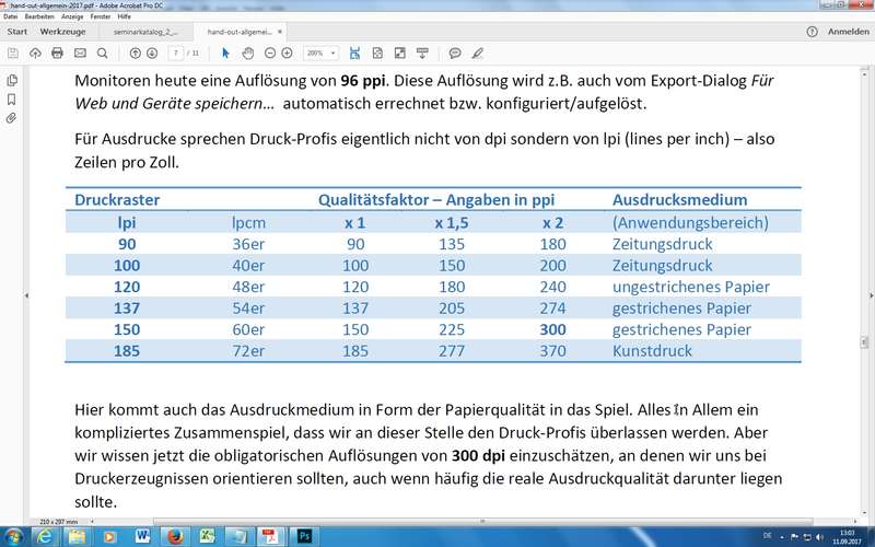 Eine Übersicht über Druckqualitäten (dort auch LPI) finden Sie im Hand-Out von mir - Grafikdateiformate (Eine "sehr" kurze Einführung)