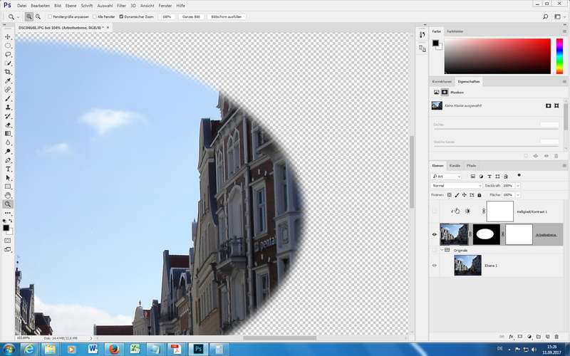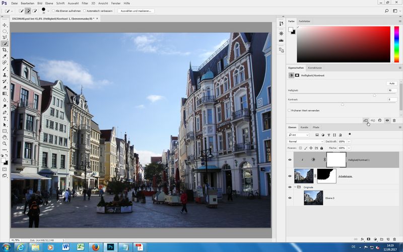 Ebenenmaske invertieren: Strg + I - Farben in Toolbox