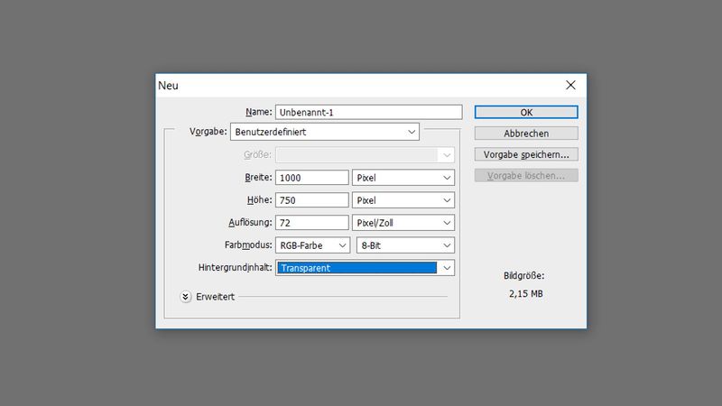 Standard-Dokumentformat von Photoshop