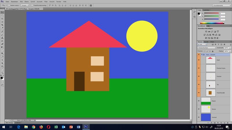 Aber: bitte möglichst die Transformationen mit gehaltener Umschalt-Taste - dadurch werden Proportionen beibehalten.