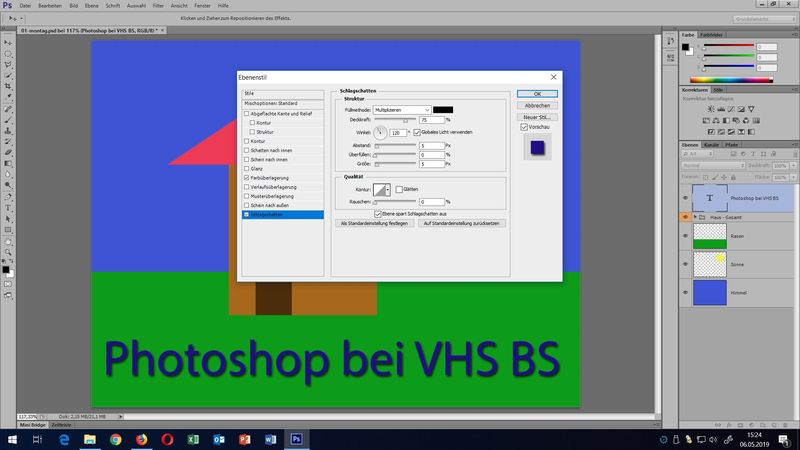 In der Woche vom 06.05. bis 10.05.2019 findet an der VHS Braunschweig ein Seminar zum Thema "Photoshop" statt. Anhand praktischer Übungen wollen wir das Flaggschiff der Bildbearbeitungen aus dem Haus Adobe kennen lernen.