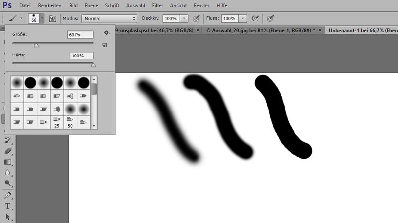 Anm.: Pinsel (Taste B - Brush) arbeitet standardmäßig mit Vordergrundfarbe