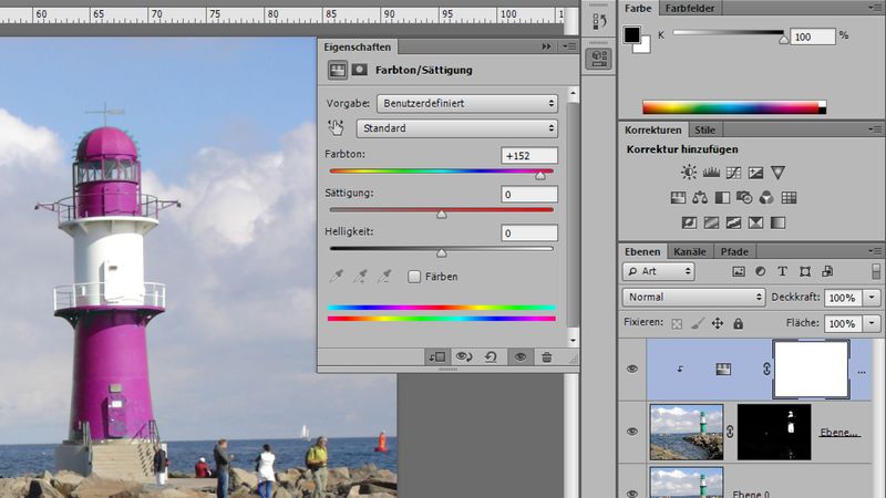 Ein-/Ausblenden von Bildbereichen mit Masken (nicht-invasives Arbeiten) - Korrekturebenen (Einstellungsebenen)