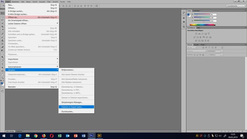 Palette Aktionen einblenden mit Menü Fenster - Aktionen (F9 bzw. Alt + F9)