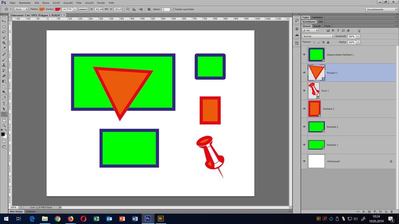 Wandlung von Ebenen in SmartObjekte (Tests und Vergleiche mit Standard-Ebenen / Pixelmassen; integrierte PSB Dateien, SmartFilter) - Formen