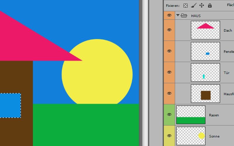 Gruppen/Ebenen einfärben, Reihenfolge von Ebenen manipuliert (per Drag & Drop mit Maus)