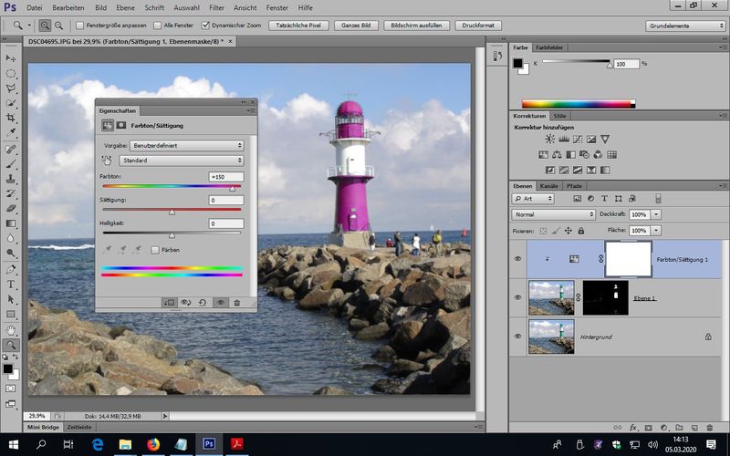 und Farben wechseln über Einstellungsebene (Korrekturebene) Farbton/Sättigung