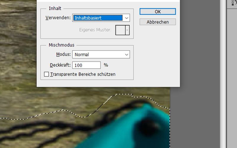 seit CS5 eingebaute verbesserte Automatismen; siehe auch Bereichsreparaturpinsel (Eigenschaften beachten: inhaltsbasiert)